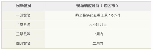現(xiàn)場支持:如果電話無法解決,我們派工程師到現(xiàn)場,具體響應(yīng)時間為 48 小時以內(nèi)。