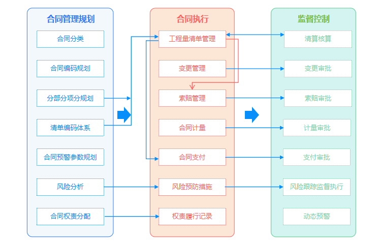 合同管理從工作包定義開始,包括合同起草、合同簽訂、文本管理、結(jié)算安排、執(zhí)行進(jìn)展、合同變更、到實際結(jié)款以及對合同結(jié)款情況統(tǒng)計分析的全方位管理控制,建立一套針對項目的完善招采策劃和控制體系,實現(xiàn)招采內(nèi)容明確、邊界清晰,招標(biāo)平臺化、電子化,確保招標(biāo)采購客觀公正。