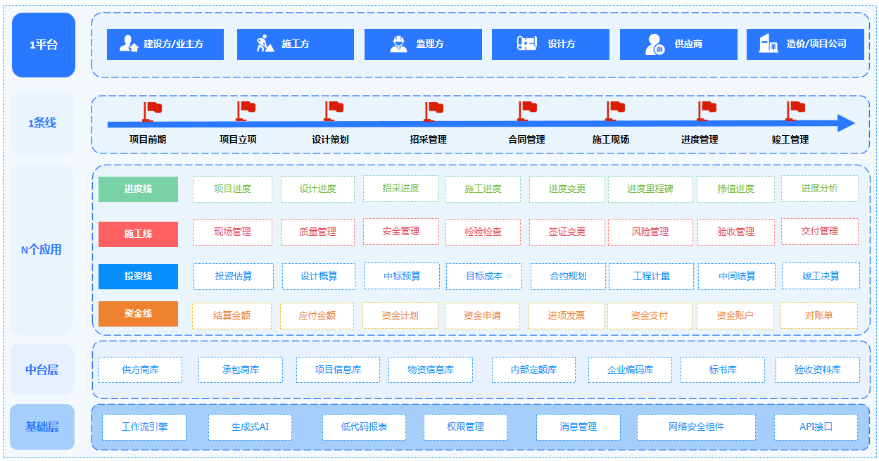打造建設(shè)投資方、施工方、監(jiān)理方、設(shè)計(jì)方、供應(yīng)商等多方協(xié)作平臺(tái)。